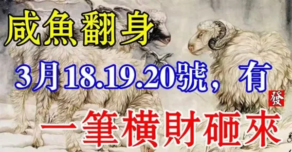 3月18.19.20號有一筆橫財襲來,鹹魚大翻身的生肖