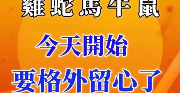屬「雞,蛇,馬,牛,鼠」人!今天開始要格外留心啦