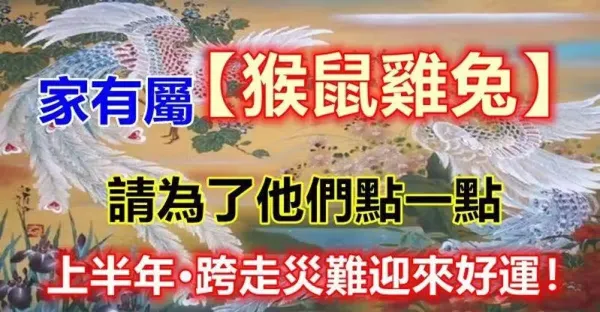 家有屬(猴鼠雞兔)請為了他們點一點,上半年跨走災難迎來好運來