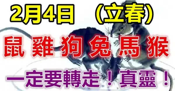2月4日立春生肖(鼠、雞、狗、兔、馬、猴)必轉