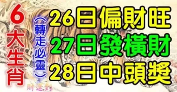 六大生肖運勢飄紅:26日偏財旺,27日發橫財,28日中頭獎