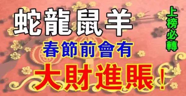 (蛇 龍 鼠 羊)春節前會有大財進賬,註定能過個幸福年