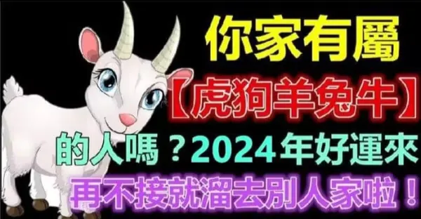 你家有屬(虎狗羊兔牛)的人嗎?2024年好運來,再不接就溜去別人家啦