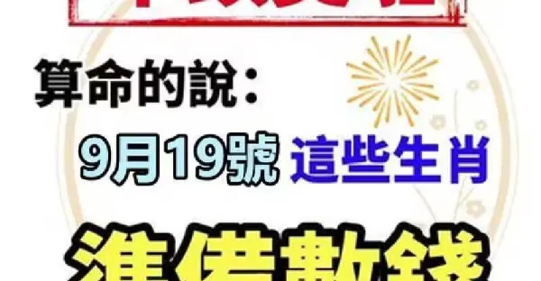 明天 「9月19號」 三生肖 橫財最旺 發久久!