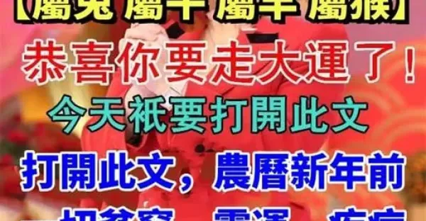 【屬兔 屬牛 屬羊 屬猴】恭喜你要走大運了!!打開此文,農曆新年前一切貧窮、霉運、疾病統統送走!