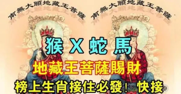 生肖屬(猴、蛇、X、馬)地藏王菩薩賜財,接住必發