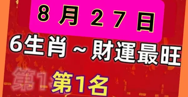 8月27日開始發大財,六大生肖大吉大利中頭彩!