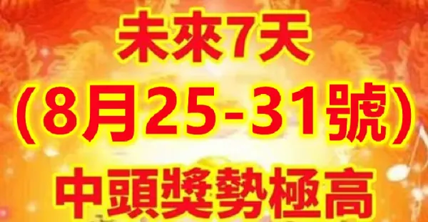 未來7天(8月25~31號)中頭獎勢極高的生肖