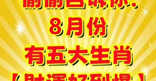 偷偷告訴你:8月份,有五大生肖【財運好到爆 】!