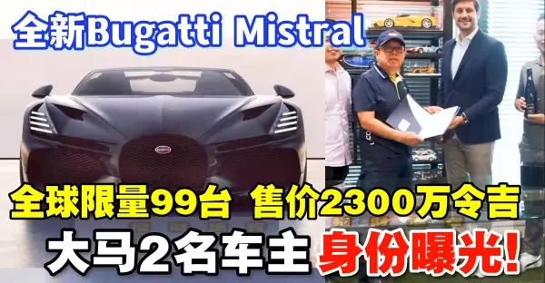 全新Bugatti Mistral,售價 RM2,300 萬,限量99台,我國有2位車主!