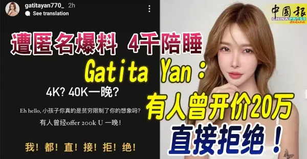遭匿名爆料 4千陪睡 Gatita Yan:有人曾開價20萬 直接拒絕!