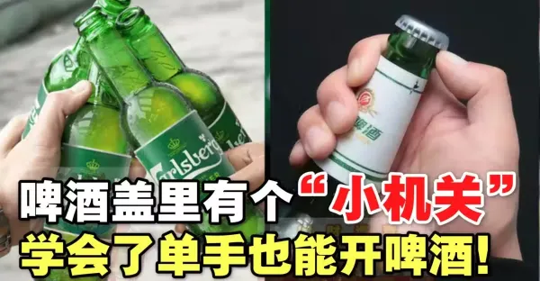 才知道,啤酒蓋里有個「小機關」,學會了也能單手開啤酒