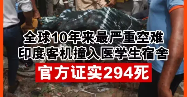 全球10年來最嚴重空難 印度客機撞入醫學生宿舍 官方證實294死