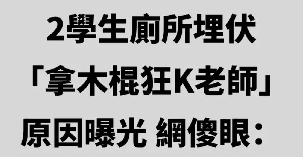 台中高中喋血!2學生廁所埋伏「拿木棍狂K老師」原因曝光 網傻眼:「現在孩子難教...」