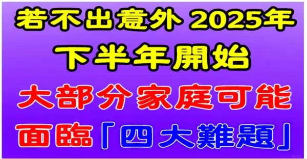 若沒意外,2025年下半年開始,大部分家庭可能將面臨「四大難題」