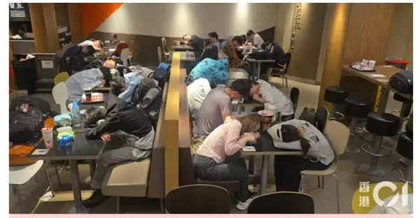 中國五一黃金周|中國客快閃訪港變窮游 拖行李「留宿」麥當勞