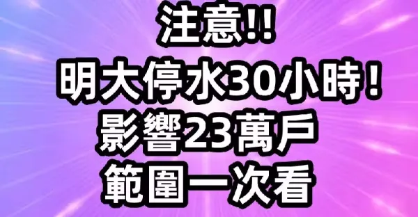 全台大停水30小時! 影響23萬戶 範圍一次看