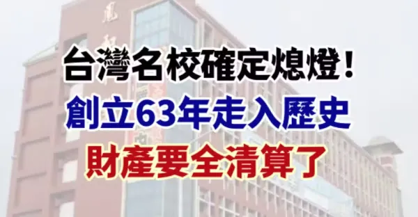 台灣名校確定熄燈!創立63年走入歷史 財產要全清算了