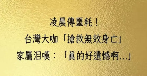 凌晨傳噩耗!台灣大咖「搶救無效身亡」 家屬淚嘆:「真的好遺憾啊...」