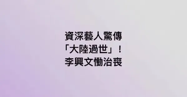 資深藝人驚傳「大陸過世」! 李興文慟治喪