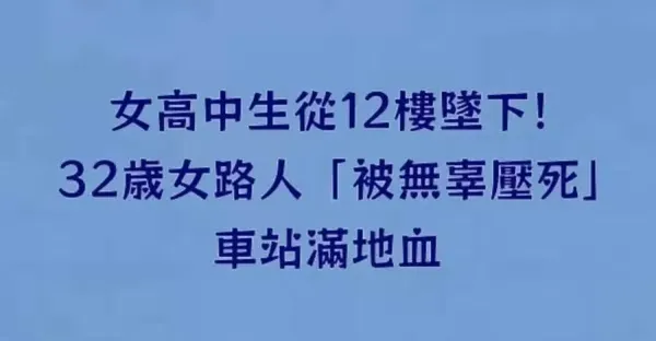 女高中生從12樓墜下 32歲女路人「被無辜壓死」車站滿地血