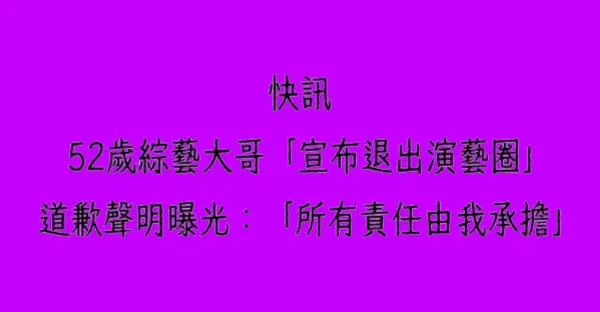 快訊/52歲綜藝大哥「宣布退出演藝圈」道歉聲明曝光:「所有責任由我承擔!」