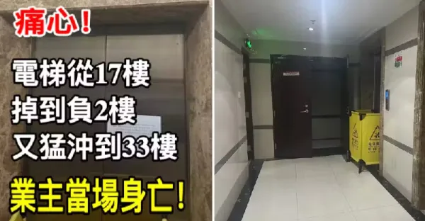痛心!電梯從17樓掉到負2樓又猛衝到33樓,業主當場身*亡
