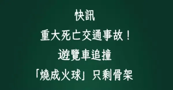 快訊/重大死亡交通事故,遊覽車追撞「燒成火球」只剩骨架 目擊者嚇壞「死傷曝光」