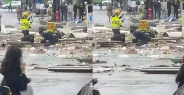 台中新光三越氣爆畫面曝!3人遭炸飛「倒地搶救」
