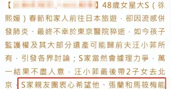 具俊曄爭奪撫養權,不讓汪小菲帶兒女回北京,大S經紀人首發聲…