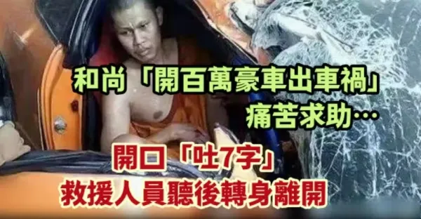 和尚「開百萬豪車出車禍」痛苦求助…開口「吐7字」救援人員聽後轉身離開