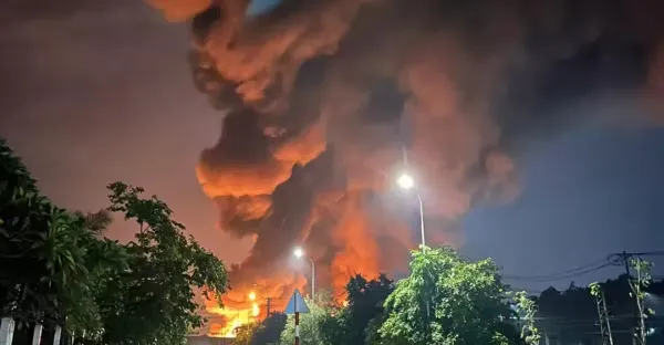 越南同奈省一家超過13,000平方米的家具製造公司發生大火