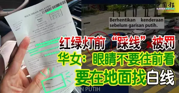 紅綠燈前「踩線」被罰 華女:眼睛不要往前看 要在地面找白線