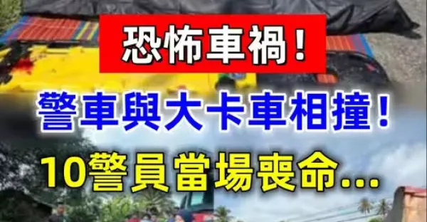 恐怖車禍!警車與大卡車相撞! 10警員當場喪命!