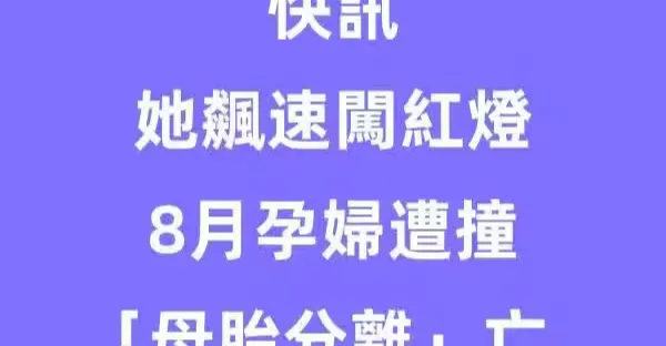 快訊/她飆速闖紅燈 8月孕婦遭撞「母胎分離」亡