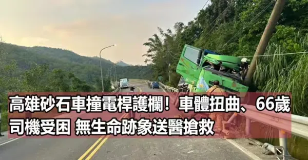 高雄砂石車撞電桿護欄!車體扭曲、66歲司機受困 無生命跡象送醫搶救