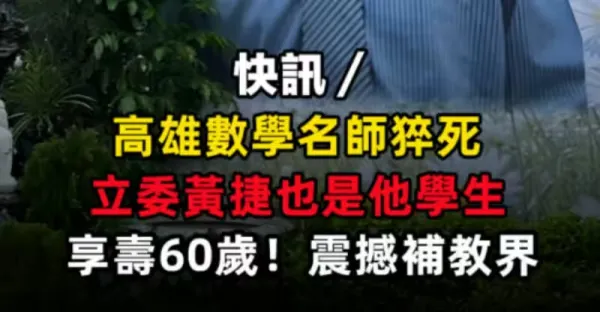 快訊/高雄數學名師猝死享壽60歲!立委黃捷也是他學生,震撼補教界