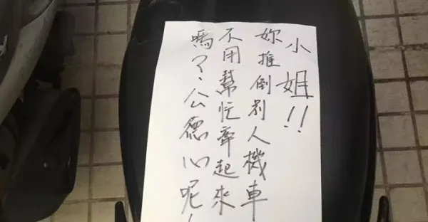 他的愛車「被惡意推倒」7PUPU留字條給對方 隔天對方「回話道歉」卻讓他氣瘋了!