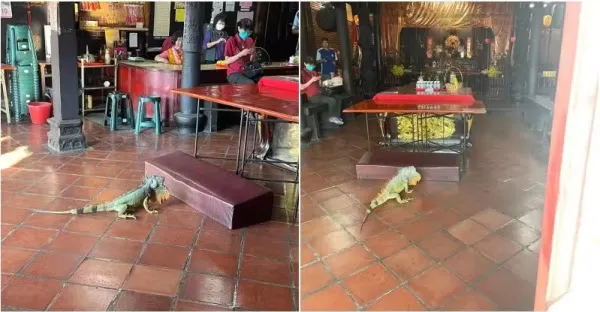 綠鬣蜥進天后宮「認真參拜半小時」!但結局並不是太溫馨