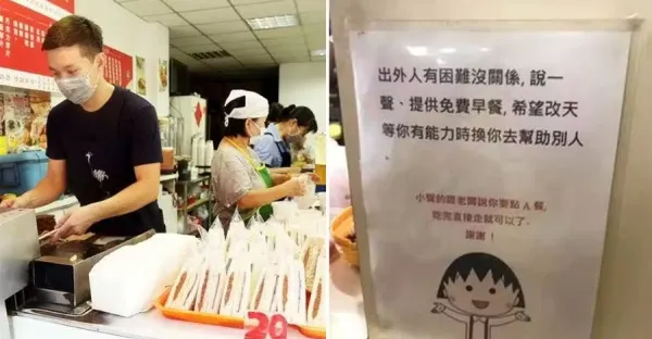 攏系甘苦人!早餐店老闆「推出免費A餐」公告:有困難就來吃, 網友發現「底下多了一行字」瞬間被暖哭