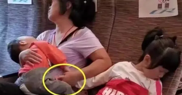 媽媽帶倆娃坐區間車睡著了,視線落在媽媽手上,網友:鼻子突然一酸