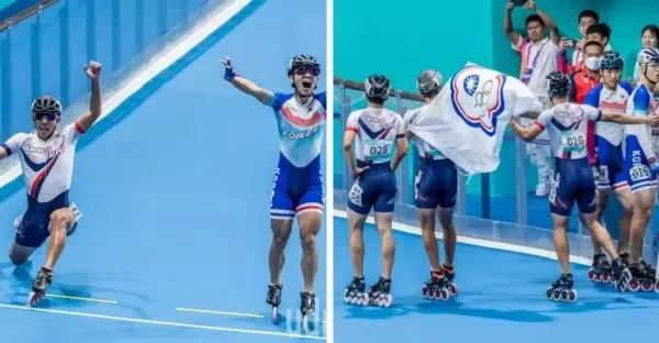 亞運賽事/南韓以為贏定了!高舉國旗歡呼「卻被中華隊逆轉」金牌沒了⋯太早慶祝「選手哭著離場」😭 #0.01秒創下奇蹟 #裁判也傻眼