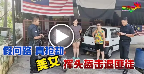 假問路 真搶劫 美女 揮頭盔擊退匪