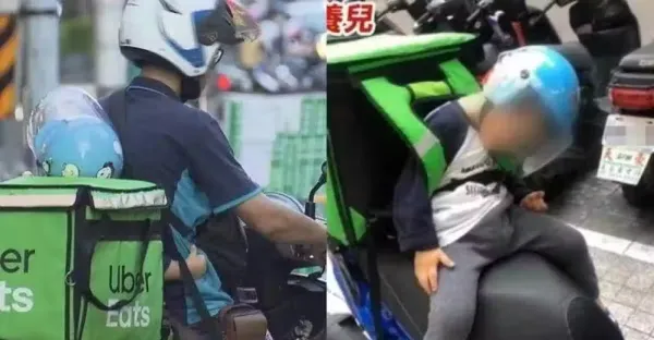 咬牙撐下去!24歲年輕爸獨力養家「日做鐵工9小時、晚上外送到淩晨」3歲兒揹保溫袋睡著!爸爸紅了眼眶:對不起孩子!