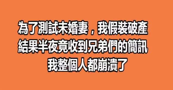 為了測試未婚妻,我假裝破產!結果半夜竟收到兄弟們的簡訊,害我整個人崩潰了!
