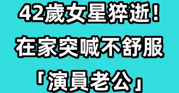 快訊/42歲女星猝逝! 在家突喊不舒服「演員老公急送醫」仍不治!