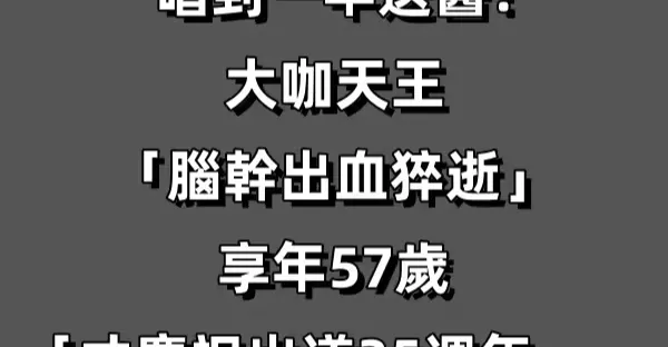 唱到一半送醫!大咖天王「腦幹出血猝逝」享年57歲 「才慶祝出道35周年」
