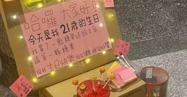 路上驚見大紙箱「插滿棒棒糖」免費送路人,21歲生日與大家一起慶祝,路人「細看便利貼」全都鼻酸!