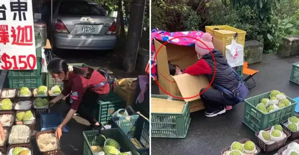 媽媽獨自擺攤賣釋迦,頂寒風冒雨撐生計,驚見她「往紙箱塞奶瓶」掀開一看:讓人鼻酸
