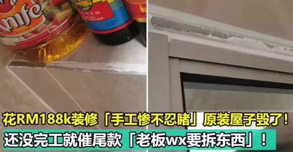 花RM188k裝修「手工慘不忍睹」原裝屋子毀了!還沒完工就催尾款「老闆wx要拆東西」!